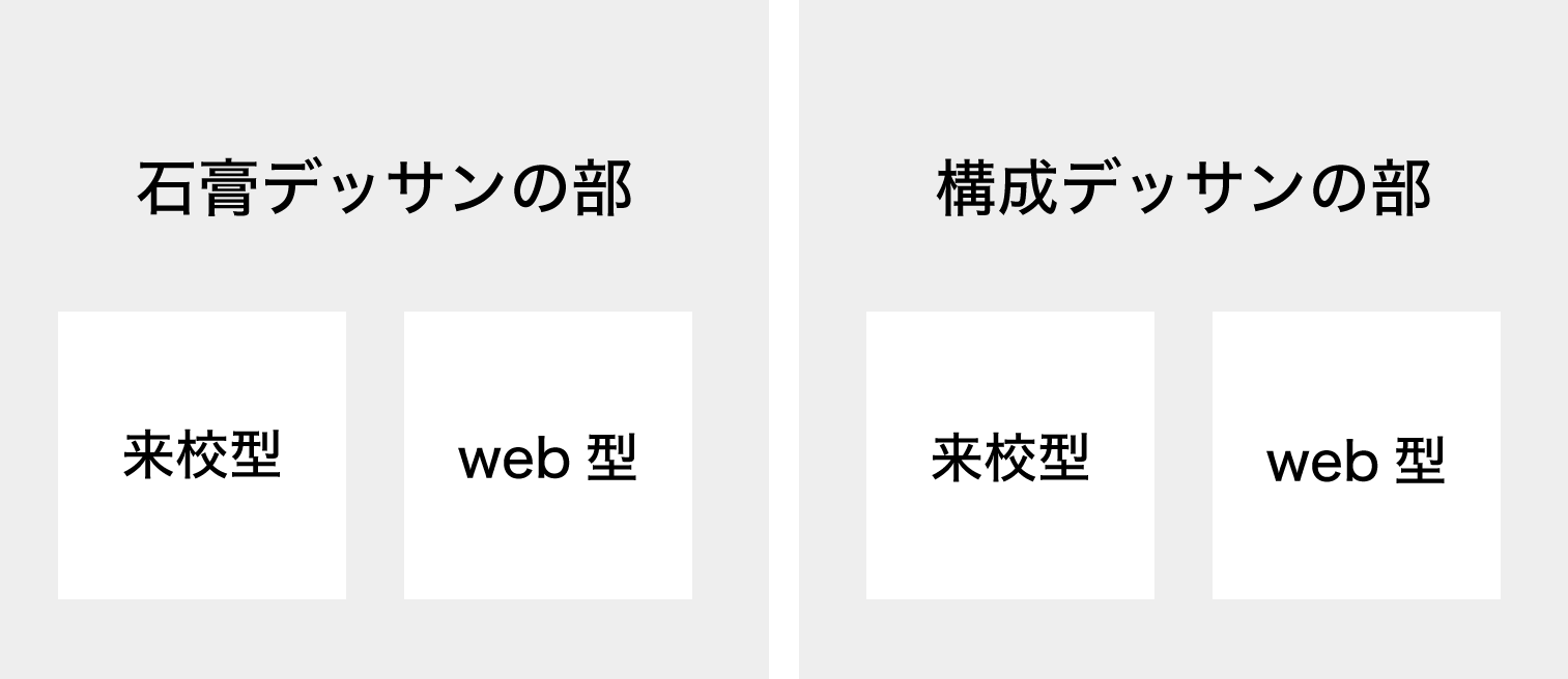 各部門ともに、「石膏デッサンの部」「構成デッサンの部」をご用意しております。